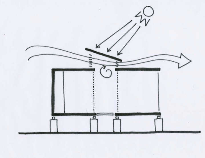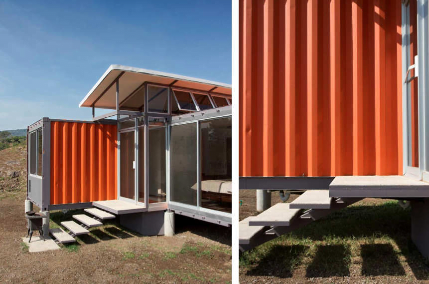 A roof between the two containers, made from the scrap pieces of metal taken to make the windows, not only creates an internal sensation of openness but also provides a cross ventilation which is surprisingly sufficient enough to never have to turn the air conditioning on.